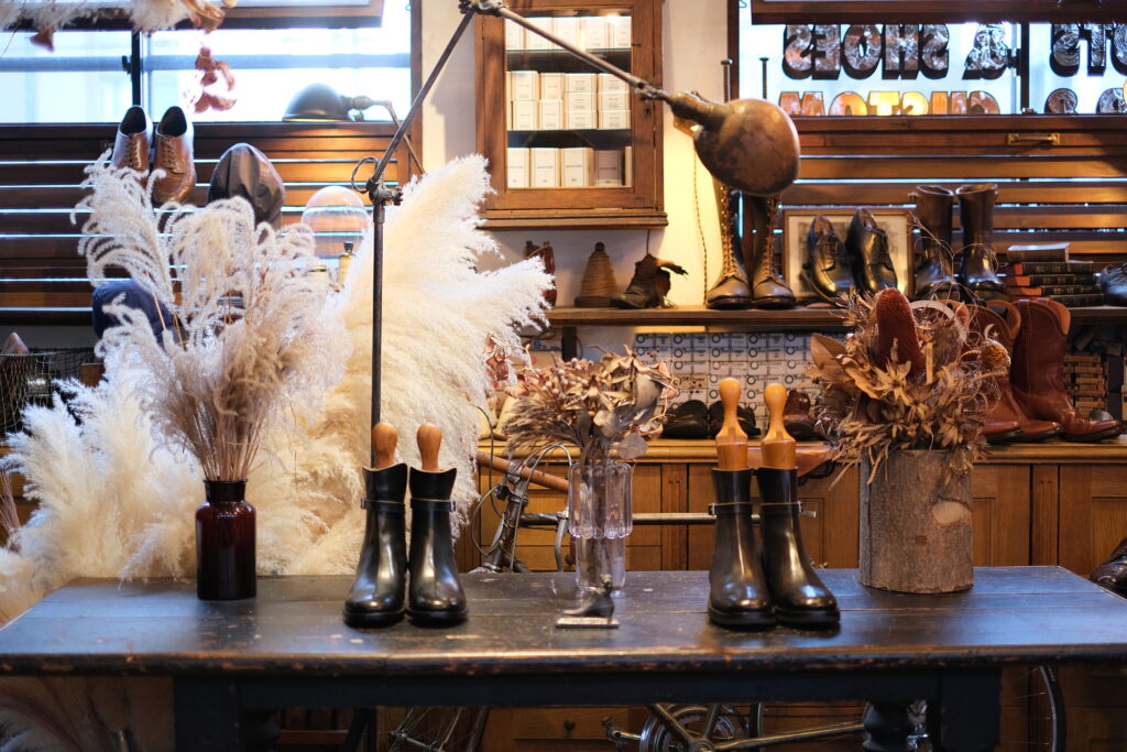 ・What we do: We restore and repair antique and vintage shoes, and manufacture and sell our original brand CLINCH BOOTS — footwear crafted entirely by hand using the Hand-sewn welted construction method, with no machines involved.